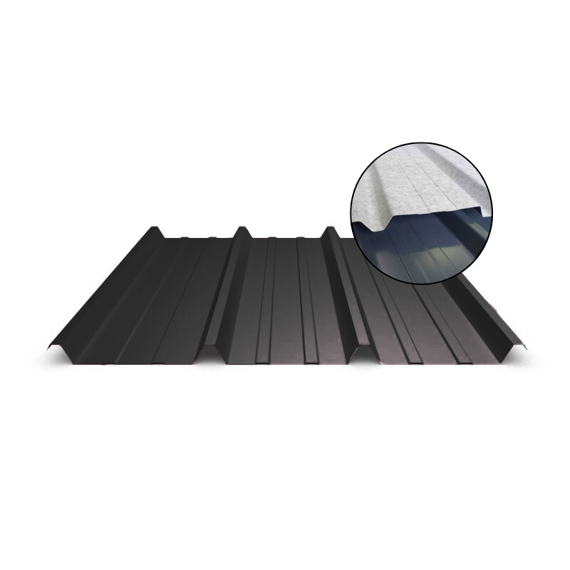 Le Bac Acier 3.45.1000 63/100 RAL 9005 + Régulateur Condensation est idéal pour la réalisation de toiture froide pour des locaux non chauffés. Grâce à sa feutrine, il permet de réguler la condensation sur vos toitures.