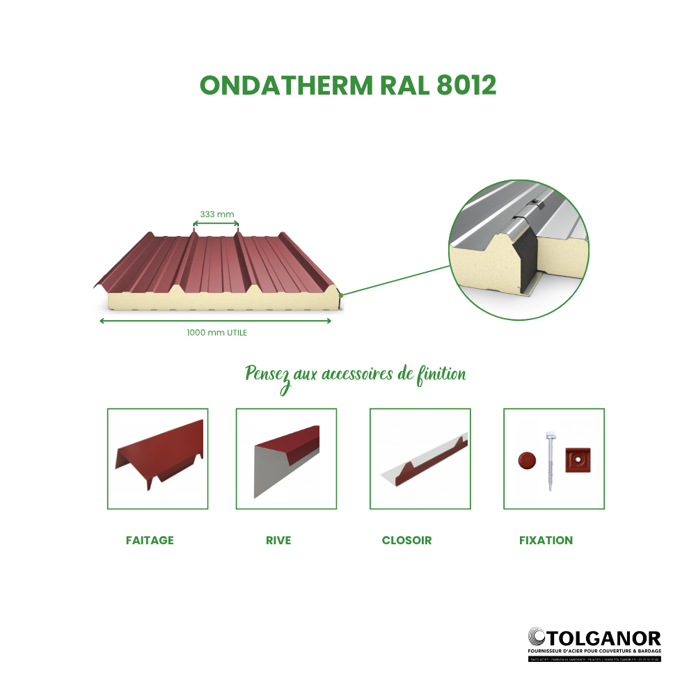 - Epaisseurs de parements standard : Extérieur 0,60 mm / Intérieur 0,40 mm
